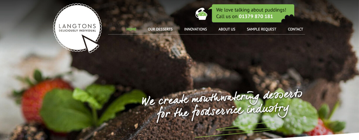 Frozen dessert manufacturers, Langtons, have a clear ‘call us’ call to action at the top of every page. It stands out and matches their sense of fun branding.