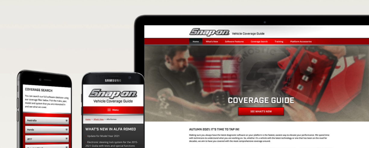 Snap-on Diagnostic's Vehicle Coverage Guide is a comprehensive product selector.