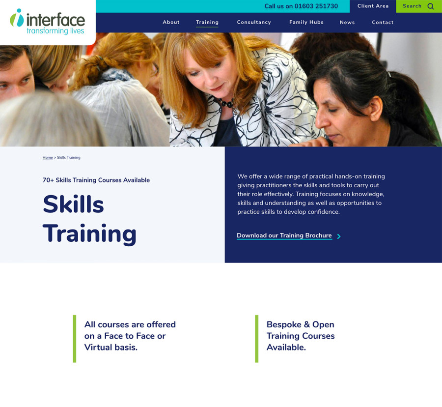 Interface Enterprises are a training company who deliver programmes to public sector clients. Their old website made it too hard to find courses and book places. Bigfork were appointed to create a new, improved website to generate more leads.