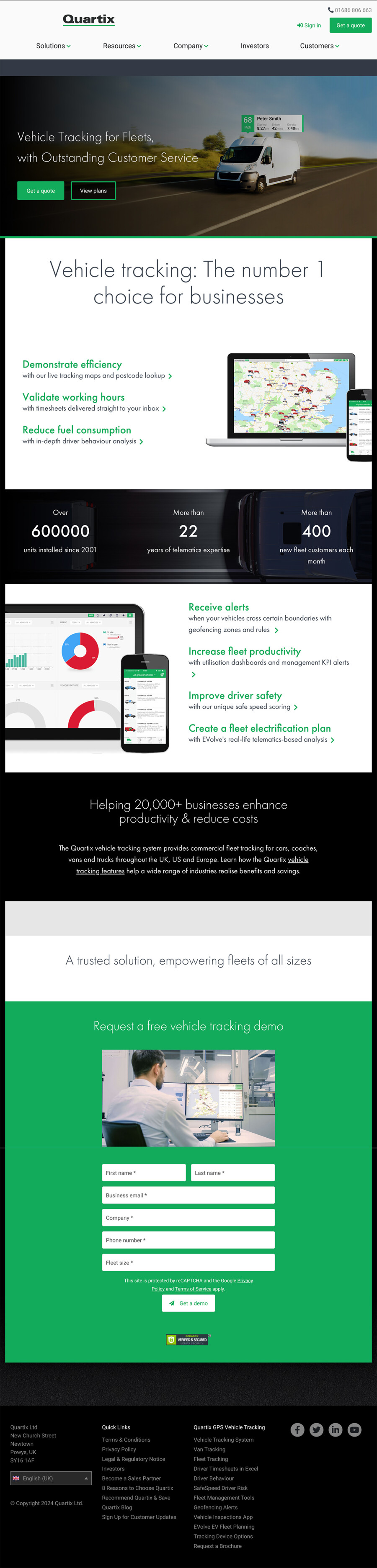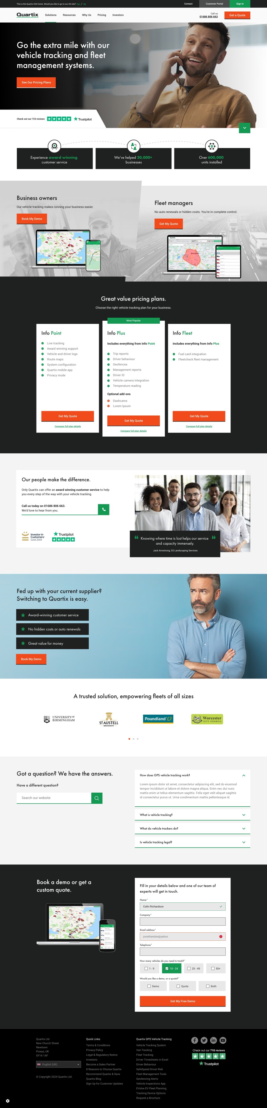 Quartix are a SaaS company offering vehicle tracking software and related services. Their website had good traffic, but conversion rates were low.
