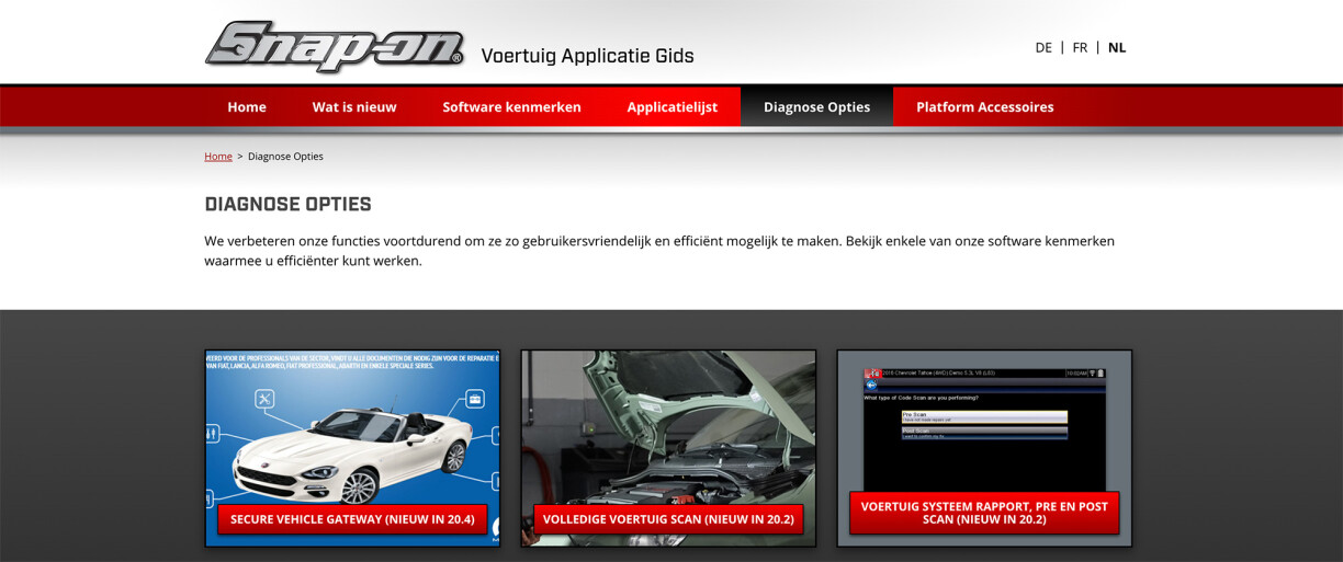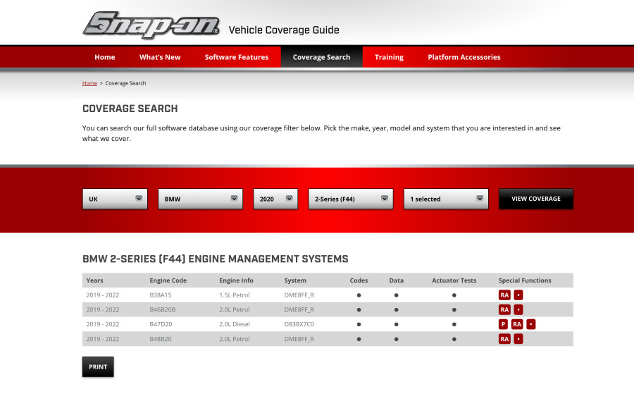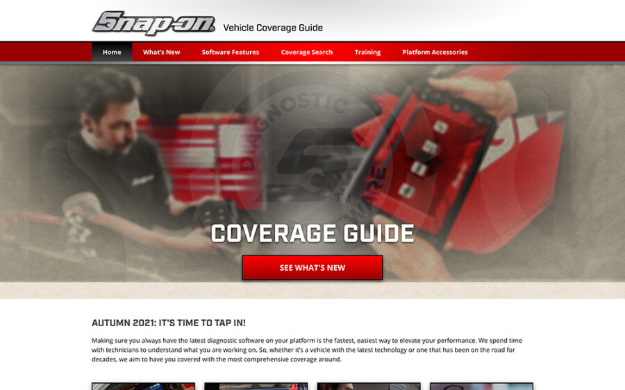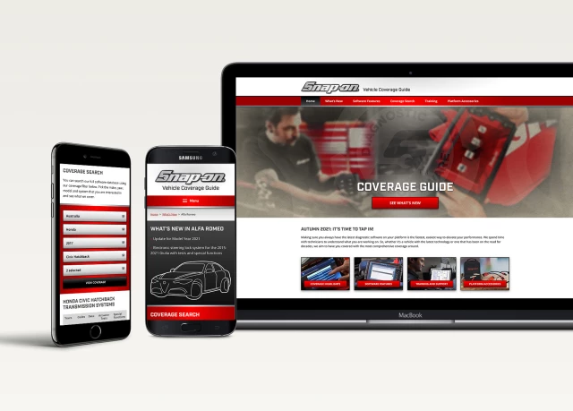 Snap-on Diagnostics appointed Bigfork as the website design agency to help with their vehicle coverage guide, a comprehensive data-set that details the functions of their software for every vehicle it can connect with.